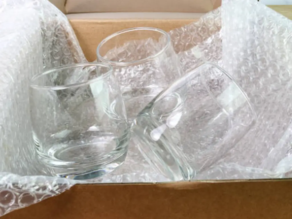 - Chemical Inertness & Plasticizer Migration: A catastrophic B2B error is wrapping high-value glassware directly in standard polyethylene bubble wrap. Temperatures exceeding 90°F in steel shipping containers rapidly accelerate chemical bonding. This outgassing leaves permanent, iridescent “bubble marks” etched into the glass. Always wrap items in chemically inert Acid-Free Tissue Paper or anti-static EPE Foam Sheets first.